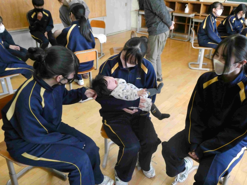 12月3日、講師に はぎもと助産院の助産師・松尾さんと塩澤さんをお迎えし「赤ちゃんふれあい体験」をさせていただきました。赤ちゃんとのふれあいの中で、産み育ててくれている家族への感謝や命の尊さを感じているようでした。ご協力いただいた母子の皆様、ありがとうございました。