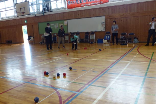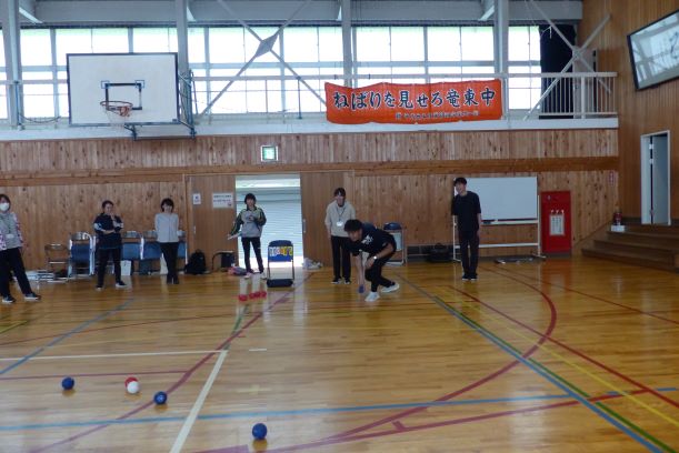 職員からは、「初めて顔を合わせる先生どうし,声をかけ合いながらプレーしてました。旧知の先生同士もお互いの得手不得手を知る場面になり盛り上がってました。」「校区の先生方のお顔やお人柄がわかってよかった」「それぞれに自己PRがあってよかった。」など感想が聞かれました。今後は夏休み明けに向けて、児童生徒への支援や関わり方など、各グループの課題に向けて取り組んでいく予定です。
